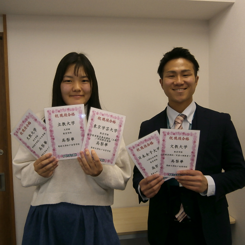 苦手な数学で受験した私大で合格を頂いたときは、今までの努力が報われた!と、とても嬉しかったです。